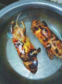 用火烧黄竹鼠彻底除去鼠毛;
