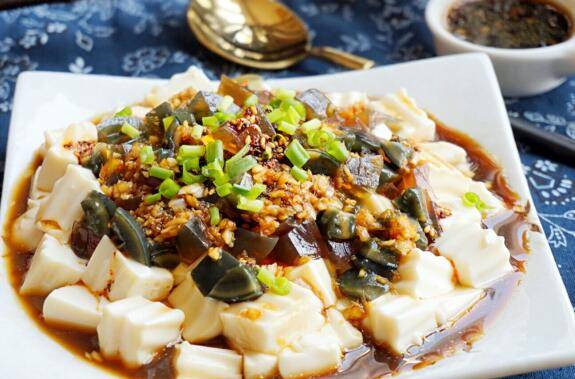 1、准备食材:豆腐1盒、姜蒜各10克、白糖1勺、醋2勺、生抽1勺、皮蛋2颗、香油适量。豆腐最好放冷冻半小时让它稍稍定型,这样容易完整的倒出来。