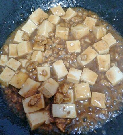1、准备食材:嫩豆腐一块、里脊肉50g、蒜3粒、葱2根、油10毫升、老抽小半勺、盐小半勺、水150毫升、水淀粉10毫升。里脊肉剁碎,豆腐切小块。