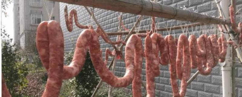 做好香肠后,将其挂在通风较好的地方晾起来。晒一段时间后,发现有气泡的地方,建议再次用针刺破排排气。晾大概2天后用牙签扎小孔,每根香肠分开扎5-6个就行。