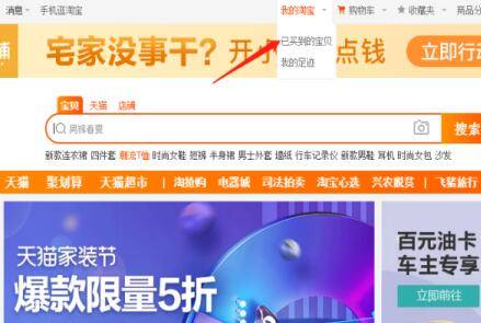 3、在打开的淘宝网中,点击“我的淘宝”“已买到的宝贝“选项。