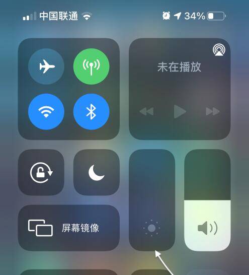 从右上角往下滑动调出控制中心,然后将屏幕亮度调到最低。