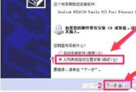 弹出更新向导,选择“从列表或指定的位置安装(高级)”,然后点击“下一步”。