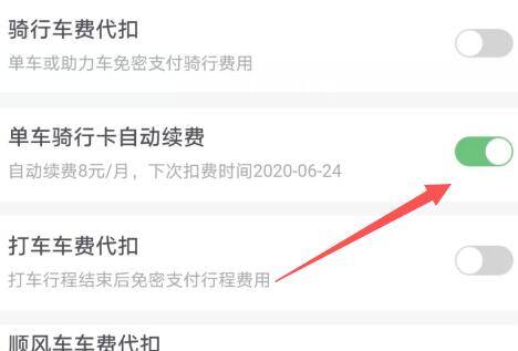 4、找到单车骑行卡自动续费,已经开通自动续费。