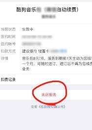 6、在酷狗的自动扣费项目详情里面,找到并点击项目下方的关闭服务。