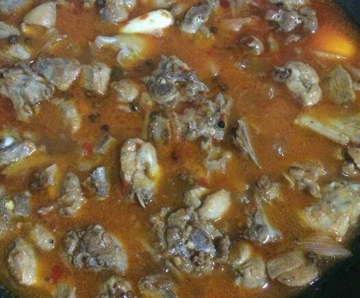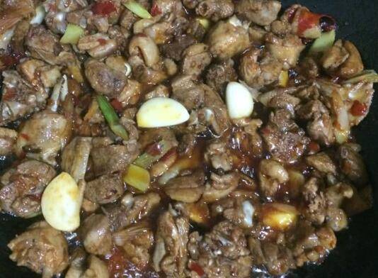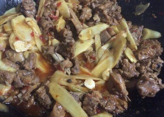 倒入鸭块翻炒,同时放料酒,多步去腥。