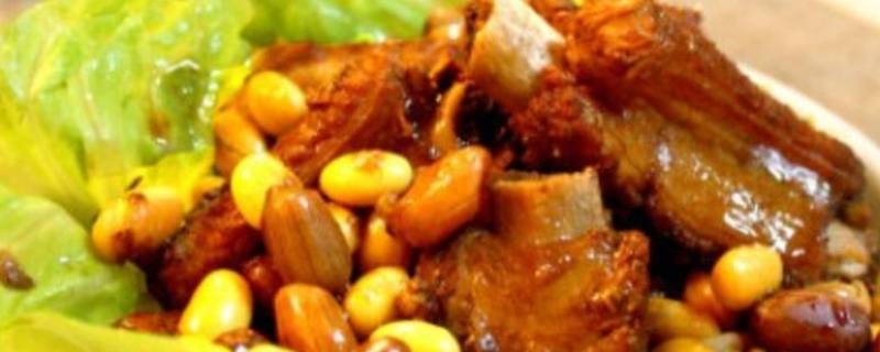 花生米200克、排骨400g、油30g、姜片3片、糖20g、盐3g、葱两根、水700ml、老抽5ml、醋10g。