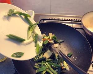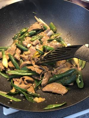 5、再放入牛肝,炒至半熟,加生抽爆炒。