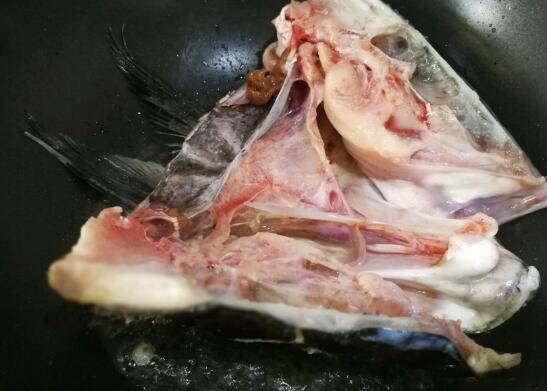 用料:大头鱼鱼头1个、姜片适量、蒜适量、葱2根、油15毫升、盐小半勺、黑胡椒小半勺、热水、枸杞适量、大枣5颗。