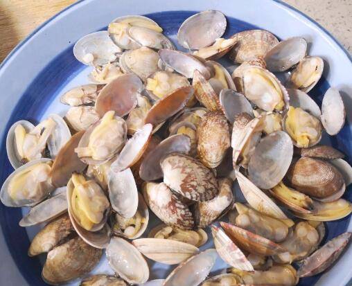 用料:花蛤一斤、葱花适量、大蒜末适量、蒸鱼豉油一勺、生姜一块、黄酒一勺。