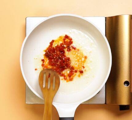倒入猪肉末,翻炒均匀,倒入料酒,煸炒至肉末变色。