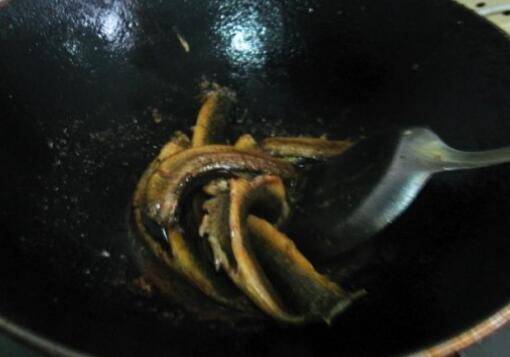 4、待泥鳅煸炒至变色后,加上酱油、盐,再翻炒。