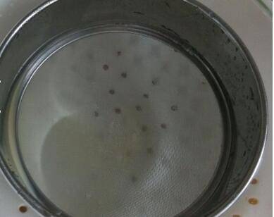 用滤网过滤2次,泡泡就会被留在滤网上面,碗里留下没有泡泡的水蛋液。