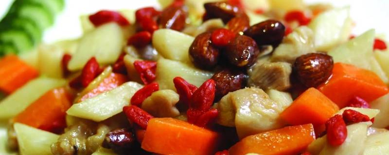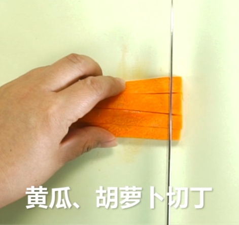 倒入黄瓜丁、胡萝卜丁、调好的汁;