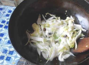 放入切好的白菜,进行煸炒;