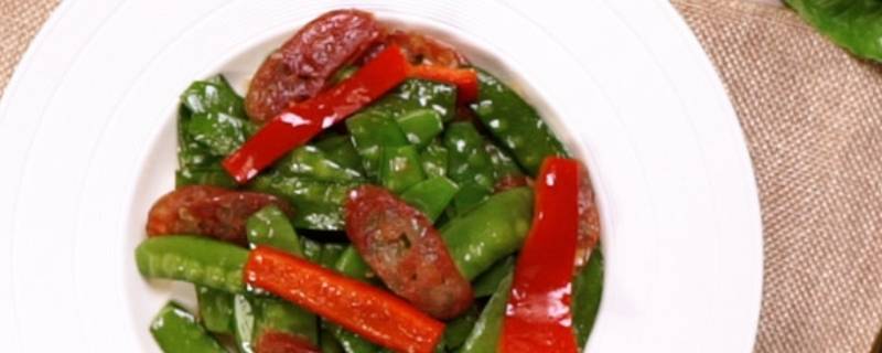1、荷兰豆去蒂,腊肠切片,蒜切成末,红椒切段。2、锅中倒油,倒入蒜末,大火爆香。3、倒入腊肠、荷兰豆、清水,翻炒均匀。4、倒入红椒段、盐、鸡粉,翻炒均匀。