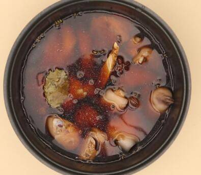 4、水500毫升,肉蔻1个,香叶1片,大料1粒,白芷1片,花椒数粒,小火炖两小时捞出即可。