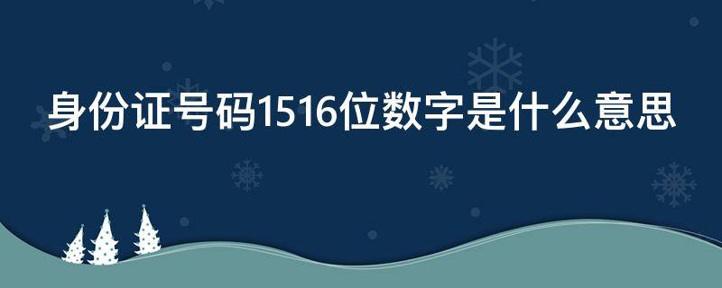 身份证号码第15、16位数字表示所在地的派出所代码,居民身份证号码,正确、正式的称谓应是“公民身份号码”。中华人民共和国居民身份证是国家法定的证明公民个人身份的有效证件。