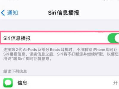 2、进入通知设置后,点击Siri信息播报,将其开关关闭即可。