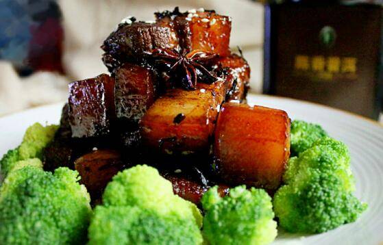 用料:五花肉1斤、普洱茶2撮、老姜4片、葱一段、料酒3勺、冰糖2块、盐、生抽、八角、桂皮、蔬菜。