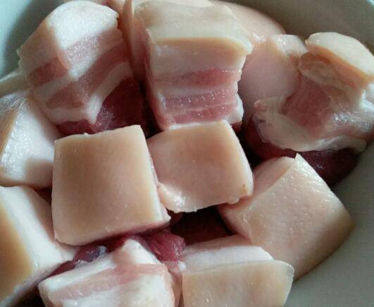 1、五花肉洗净,控干水分,切成3厘米左右的方块。
