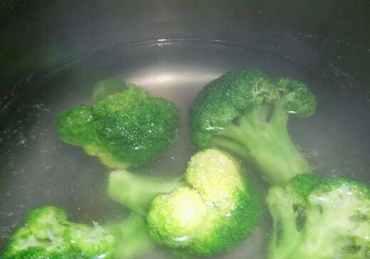 7、烫几颗西兰花,也可用青菜,在水里放些盐。