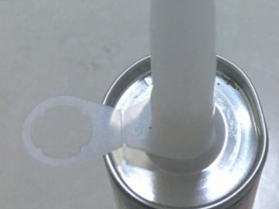 2、玻璃胶进行打孔,将空心的帽子盖拧到玻璃胶筒上。