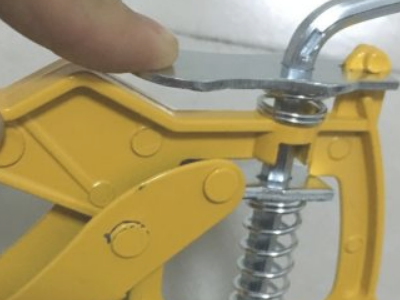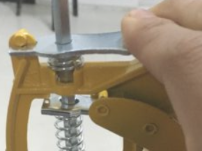 4、按住短板,将固定杆顶住玻璃胶筒的底部。
