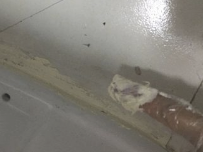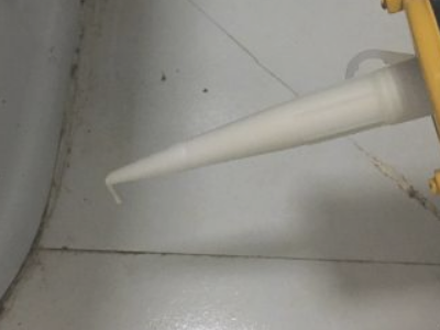 5、用力捏长板,玻璃胶会流出来,直接将玻璃胶流到破损的地方。