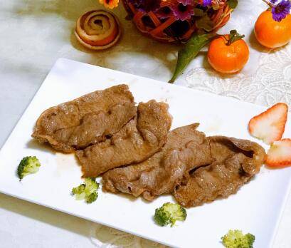 1、牛肩肉几片、生抽一勺、料酒一勺、糖一勺、生粉少许、食用油一勺。