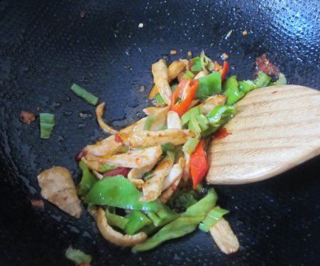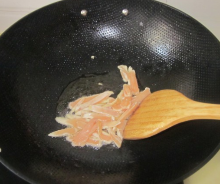 鸡脯肉切宽条,尖椒、胡萝卜切宽条,葱姜切片,蘑菇挤干水分;
