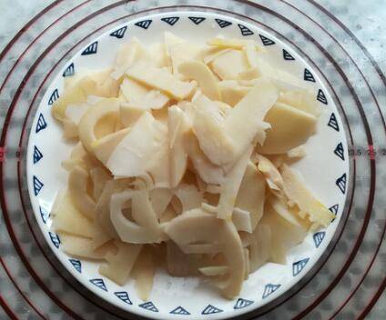 用料:五花肉250克、春笋3根、蒜米4瓣、辣椒1个、盐2克、生抽5克、蚝油10克、食用油20克、葱花适量。