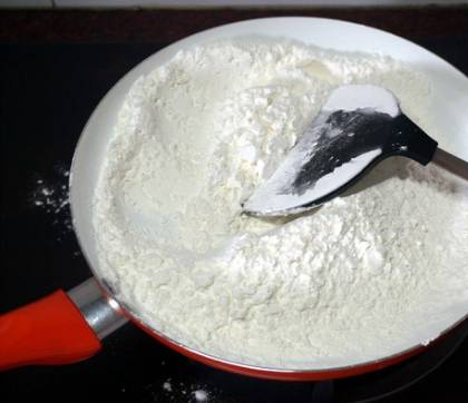 1、吉利丁片用饮用水浸泡湿润,玉米淀粉倒入锅里炒熟。用连模装入适量的熟玉米淀粉,用鸡蛋印出深凹痕备用。