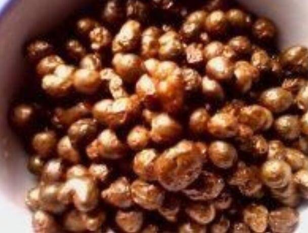 4、待山药豆炸熟后捞出,锅中留适量油。