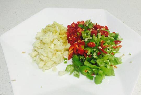4、姜蒜辣椒切碎。