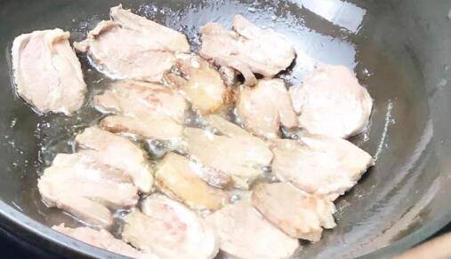 炒锅充分预热后,加入植物油加热至产生油纹,放入切好的肉片。