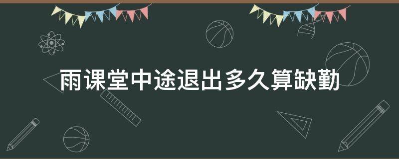 雨课堂中途退出10分钟以上算缺勤。雨课堂如果中途退出大于30秒,后台就会给老师显示;退出时间大于10分钟后就算缺勤,提前1分钟退出课堂算早退,迟到五分钟以上算迟到。雨课堂是清华大学和学堂在线共同推出的新型智慧教学解决方案,是教育部在线教育研究中心的最新研究成果,致力于快捷免费的为所有教学过程提供数据化、智能化的信息支持。