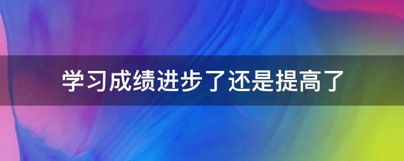 学习成绩是进步了。进步是指人或者事物向上或向前发展,引申为适合时代要求,对社会发展起促进作用的;提高是使位置、程度、水平、数量、质量等方面比原来高。广义的学习是指人与动物在生活过程中凭借经验产生的行为或行为潜能的相对持久的变化。次广义的学习指人类的学习。狭义的学习专指学生的学习。根据不同的标准,学习可以分为不同的类别,主要介绍加涅的学习层次分类、学习结果分类和我国心理学家冯忠良的分类。