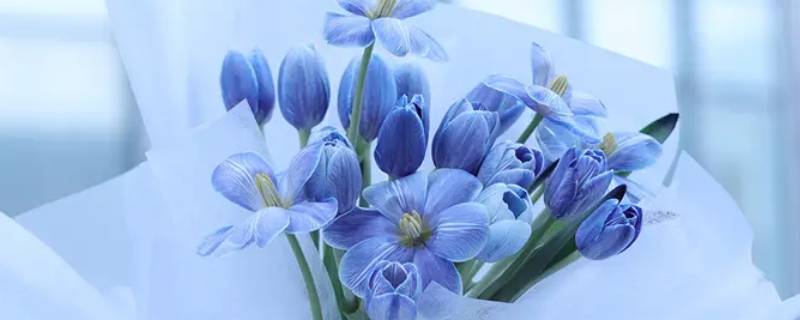 蓝色郁金香不是染色的,但也不是天然的,而是人工培育的,野生的天然郁金香没有蓝色的。郁金香的花语含义比较丰富,常见的能够表达出“永恒的爱、名誉、荣誉、心地善良、表白、祝福、高贵、美丽”等。可以将郁金香送给恋人,也可送给女性朋友,或者用于表白。