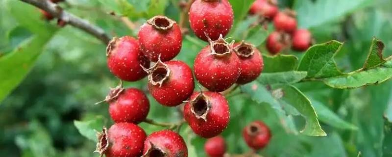 6、山楂:果实近球形或梨形,直径1-1.5厘米,深红色,花期5-6月,果期9-10月。