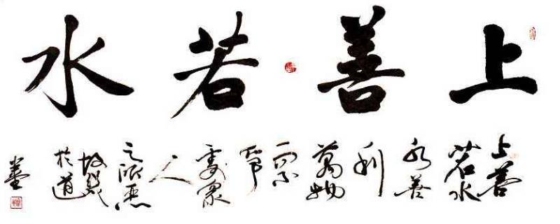 上善:最完美;水:避高趋下是一种谦逊,奔流到海是一种追求,刚柔相济是一种能力,海纳百川是一种大度,滴水穿石是一种毅力,洗涤污淖是一种奉献。逝者如斯夫,人生犹如奔流至海的江水。乐善好施不图报,淡泊明志谦如水,而在这里水是喻指与世无争的圣人。达到尽善尽美的境界,就和圣人差不多。这句话可以理解为:水有滋养万物的德行,它使万物得到它的利益,而不与万物发生矛盾、冲突,故天下最大的善性莫如水。