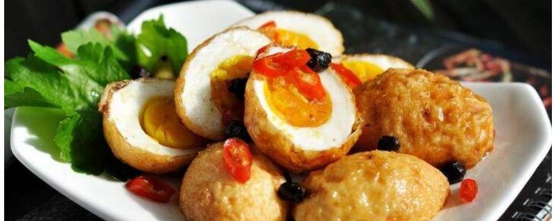 4、切好的鸡蛋入油锅,不停的翻动,小火慢炸。