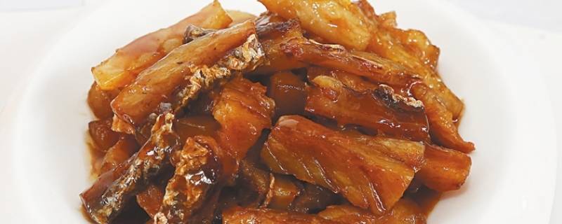 2、鱼干用醋泡10分钟,腊肠用来调香味。