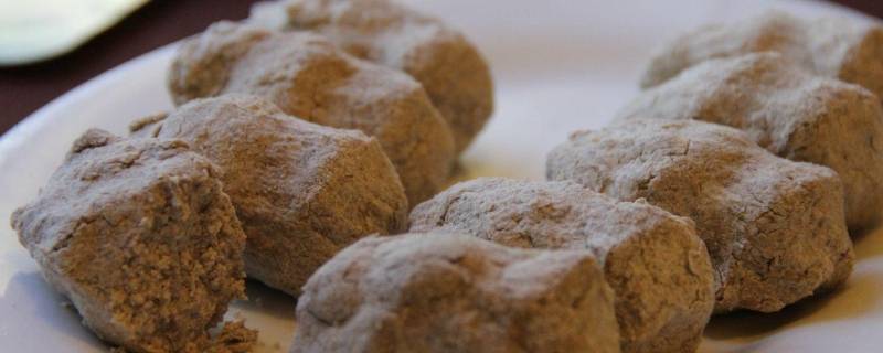 6、糌粑蜕:把糌粑、酥油、奶渣、捣碎的红塘或白糖都一起放在搅拌盆子中,用手进行拌和,拌和均匀后根据需要可以作成各种形状。
