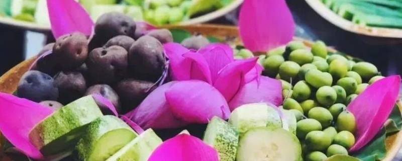 4、丘北莲花宴:荷花不仅可以观赏,而且还是一道美味。荷花、荷叶、莲子、莲藕通过花样叠出的烹调,可以做成一桌丰盛的佳肴。春末夏初,荷叶才露尖尖角时,荷叶炒鸡蛋、荷叶粥便成为丘北人餐桌上的家常菜。