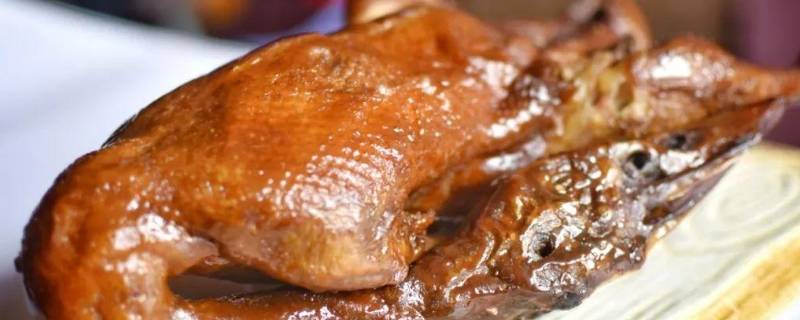 2、先将鸭宰杀干净放锅内,加水、肥膘、红米粉、盐、酱油、冰糖、桂皮、茄香、葱、姜各少许在旺火上烧沸,放黄酒加盖烧约,1小时,再将鸭身翻转后移至小火续烧半小时取出待冷后斩条块。拣出锅中肥膘将锅中卤汁筛滤后放另一锅中,加酱油、白糖,在旺火上烧开,加水淀粉搅和,起锅倒入钵中,冷透后放麻油少许搅和,将其卤汁浇在鸭上即成。色彩红润。肉味鲜嫩、烟香诱人,是下酒佳肴。