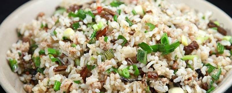 6、转入小火,加入米饭,转中火继续翻炒均匀。