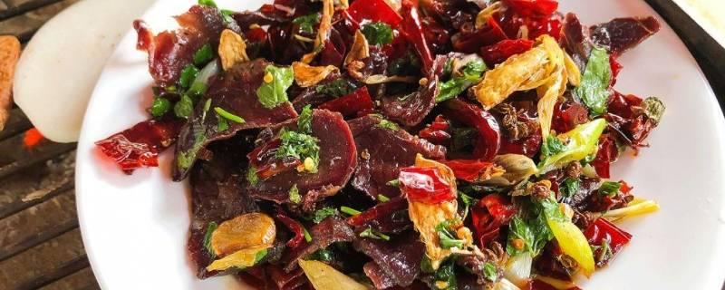 2、牛干巴切薄片,其它配菜备好。
