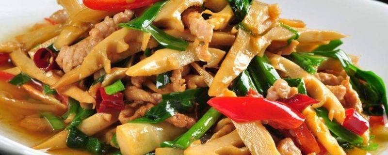 竹笋250克、猪肉150克、小米椒3个、大蒜2瓣、姜1块、盐2克、油5毫升、生抽5毫升、豆瓣酱1勺、花椒3克、葱3根。