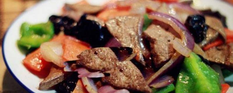 倒入食用油5毫升、洋葱,翻炒均匀,倒入猪肝,翻炒均匀,倒入盐2克、白糖、淀粉,翻炒均匀。